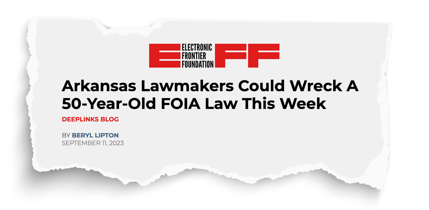They tried to gut Arkansas’s Sunshine Records law, which has been a national model since Republican Governor Rockefeller passed it in 1967. When Republicans and Democrats took to the committee rooms, we were able to stop the worst bills that would have completely stripped our right to see public records.